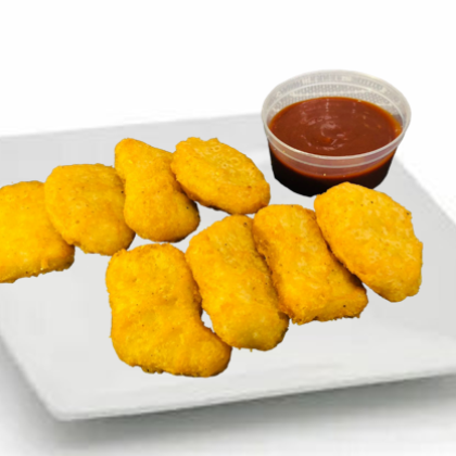 Фирменный рис, имитация "Снежный краб ", сыр Моцарелла, кляр, сухарь Панко, соус Цезарь.